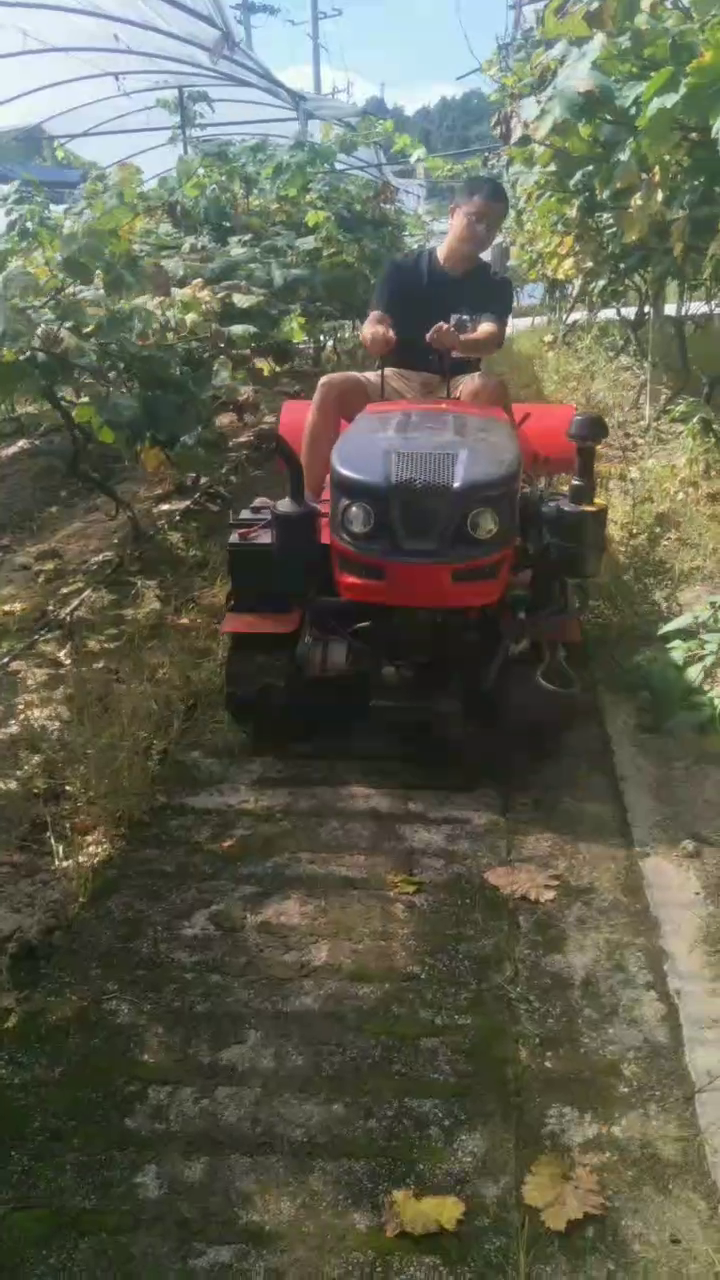 35马力乘坐式履带旋耕机在葡萄园试机!详细咨询:13983125011